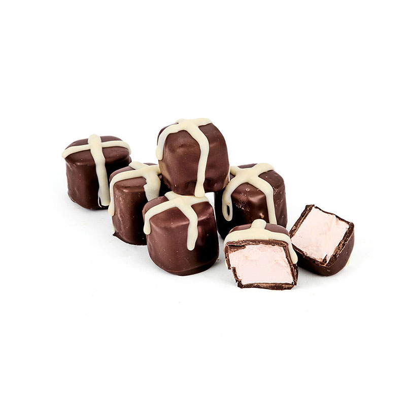 The Easter Bunny has been busy decorating one of our favourite sweet treats for Easter. Our classic Dark Chocolate Marshmallow has been piped with a yoghurt criss cross to create the effect of a hot cross bun, but with the same great taste you know and love.